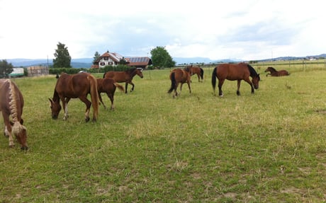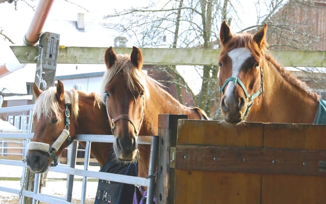Die robusten Freiberger freuen sich über den täglichen Weidegang. Alle gehen gemeinsam auf die Weide, von Jung bis Alt, von Klein bis Gross. Unsere Pferde wohnen in verschiedenen, grossen Gruppen in Freilaufställen. Die Fütterung von Heu, Stroh und Kraftfutter wird auf die Bedürfnisse der Pferde und die Wünsche der Besitzer individuell angepasst.